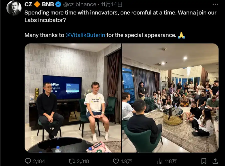 11 月的另一波热点就是 DeSci。11 月 8 日,Binance labs 宣布投资 BIO Protocol,称该项投资标志着 Binance labs 首次涉足去中心化科学(DeSci)领域。就在这一消息公布后不到一周,CZ 出席了 Binance 在曼谷举行的 Desci Day 活动,并和 Vitalik 一起讨论 Desci 见解。