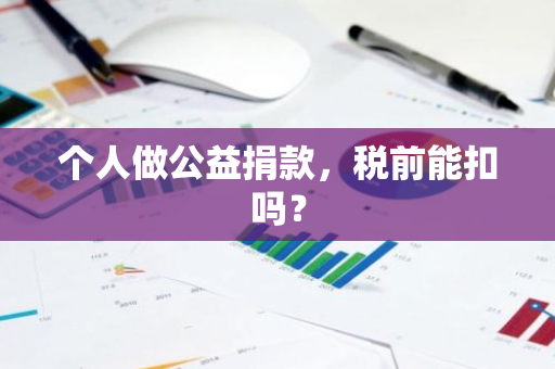 个人做公益捐款,税前能扣吗? 更新时间:2024-12-30 21:00:57 •阅读 0 个人将其所得用于支持教育、扶贫和济困等公益慈善活动时,如果捐赠金额不超过其申报的应纳税所得额的30%,该部分捐赠可以从应纳税所得额中扣除。此外,根据国务院的规定,对于向公益慈善事业的捐赠,实行全额税前扣除政策,具体规定按照国务院的规定执行。