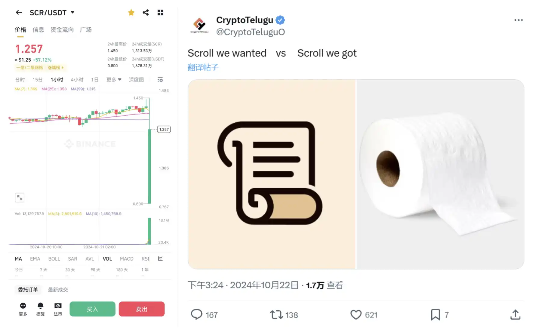 某 S 姓知名项目在 Binance 结束盘前交易后正式开盘,看 K 线一时分不清是涨还是跌,历史罕见。