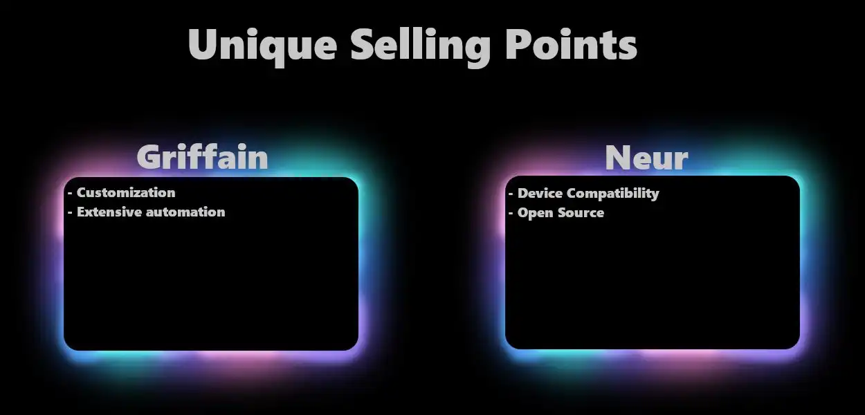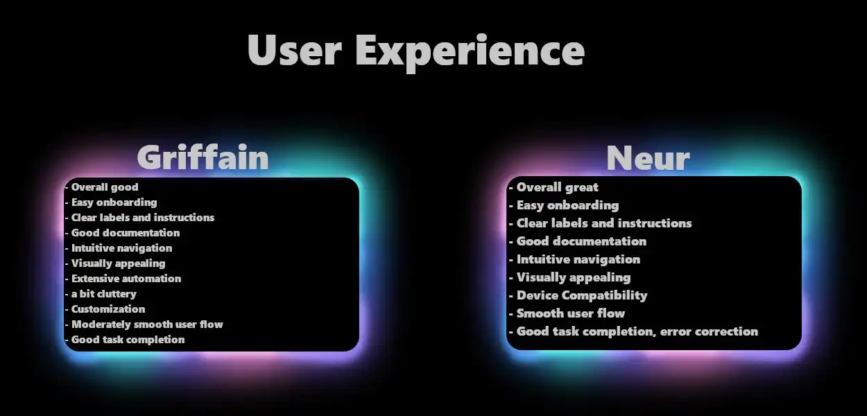 对于 Neur 而言,以完全开源的多设备兼容性脱颖而出,而 Griffain 则更突出广泛的自主权和自定义功能。