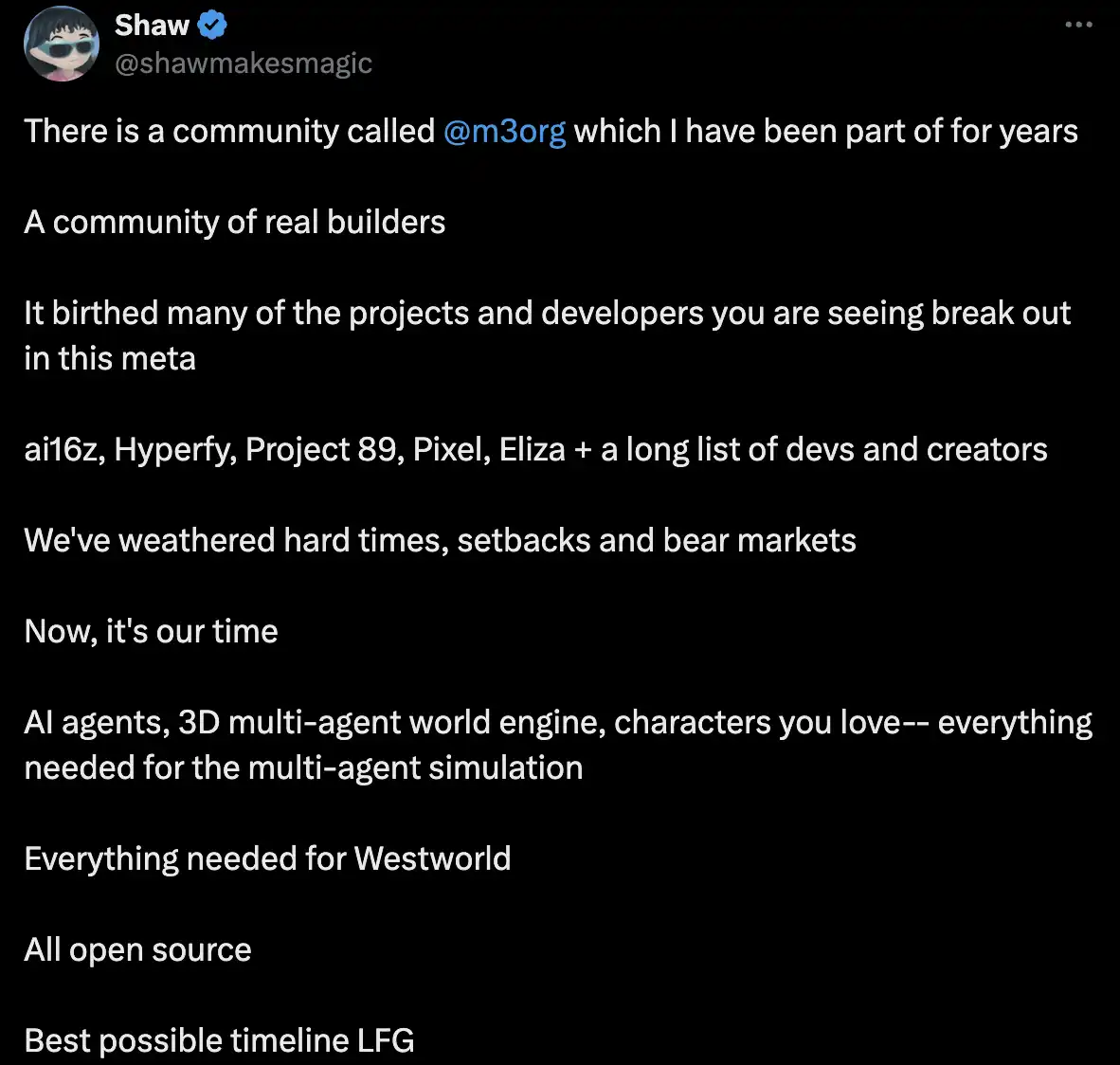 揭秘ai16z背后的神秘组织M3org:当泡沫变成现实,用AI打造DogFooding的元宇宙