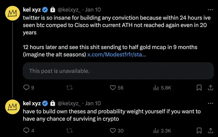 我观察到最成功的加密货币交易者都具备一个共同点:他们的观点很强,但就像穿着一件宽松的外套,市场风向变化时,他们可以随时丢掉这件外套。他们明白,在加密市场中,正确并不意味着保持不变的信念,而是保持不变的关注和适应能力。