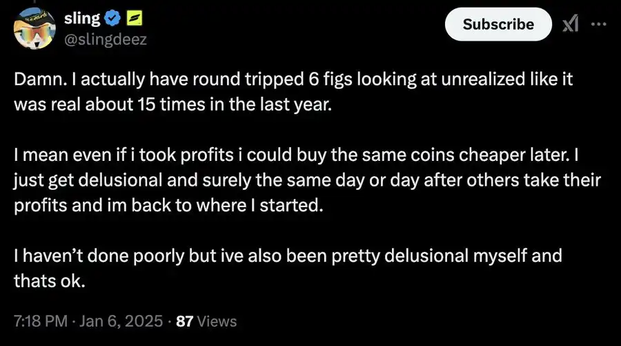 市场不会在意你关注了哪些有影响力的账户或加入了哪些「alpha 群」。它只对供需关系、恐惧和贪婪,以及基于这些情绪行动的市场参与者做出反应。这就是为什么盲目复制交易而不理解其背后逻辑是危险的——你永远不知道何时该退出,何时该加仓,更重要的是,何时原有的假设已不成立。