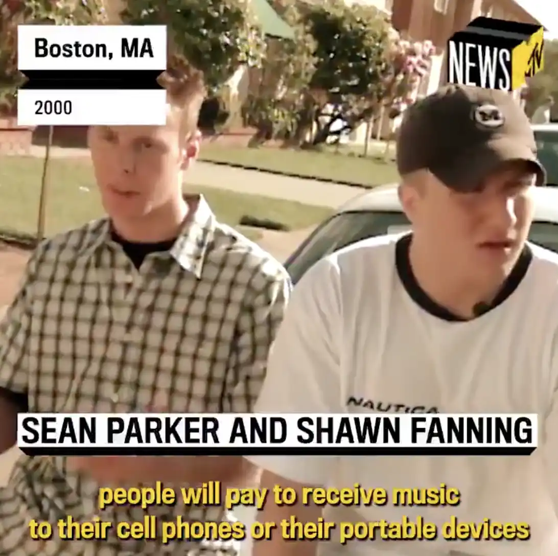 由 Shawn Fanning、Sean Parker 在 1999 年建立,在那之前唱片公司与艺人的关系紧密,掌控发行和宣传,用户只能通过唱片行、唱片店、电视/电台等渠道接触新歌,实体唱片的利润率较高,尤其在 1990 年代,CD 销售曾达到顶峰。而 Napster 使用了点对点技术(P2P)让用户直接共享自己的 MP3 文件,形成一个全球性的音乐下载网络。短时间内积累了上千万用户。因其去中心化服务器的模式让唱片公司无法切断源头,深刻冲击了传统唱片业,但也因版权诉讼在 2001 年被法院勒令关闭,但其影响了整个音乐产业的模式,以及之后 iTunes 以及 Spotify 等合法版权的数字音乐版权的思考。
