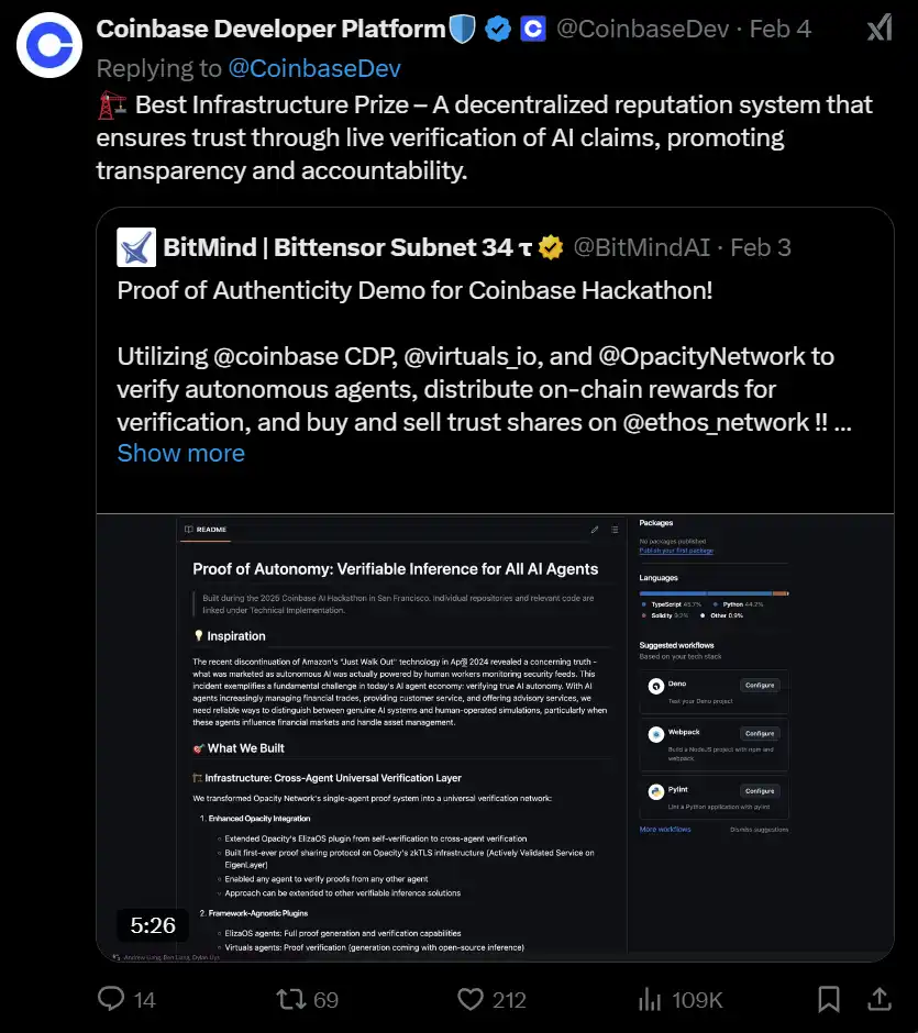 市场可能处于低迷期,但创新并未停止。许多黑客马拉松正在进行中;coinbase 刚刚结束,BitMindAI 荣获最佳基础设施奖。