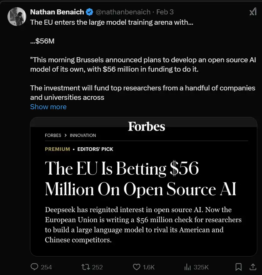 2 月 3 日—「现在这个 [AI] 模式完全开源,预计将看到各地的大规模提升」- hosseeb