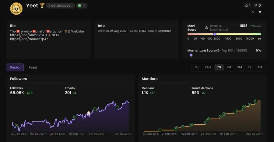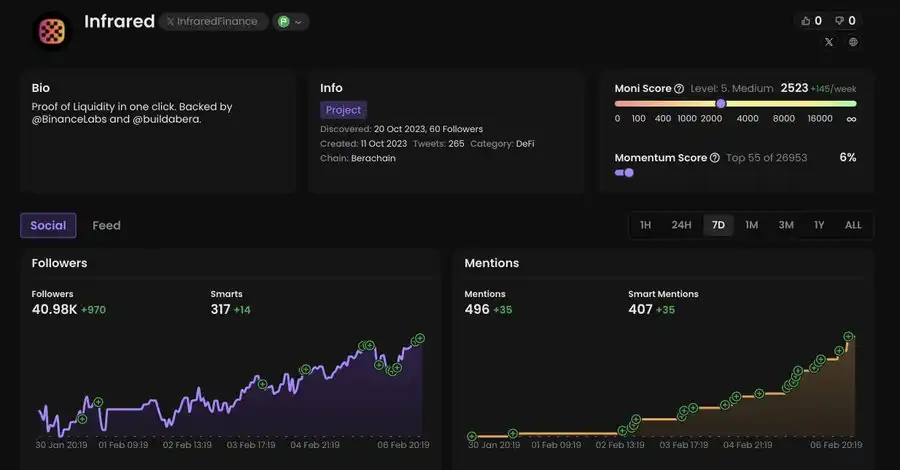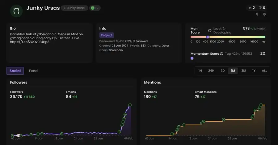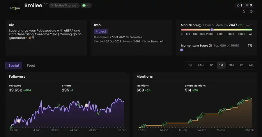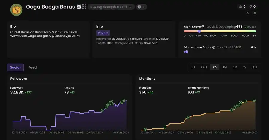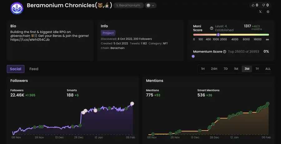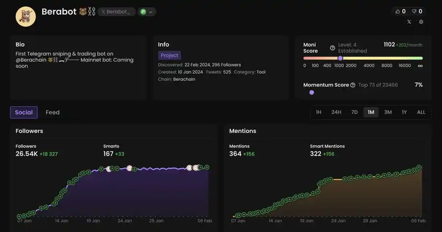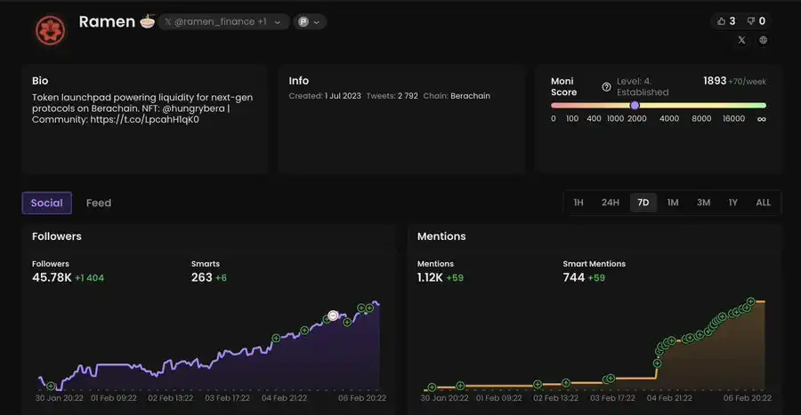 操作建议:NFT 持有者的快照已经完成,他们将获得即将在 2 月中旬 Ramen Finance 上进行的 $BERAMO 代币销售的 WL(白名单)。你可以考虑参与公开销售阶段。