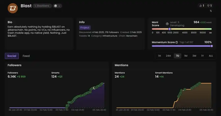 操作建议:该项目将在 Berachain 启动时推出其代币。在 Boyco 中,它没有引起太多热情,并且获得了较为温和的 TVL。这是可以理解的,因为除了 $BERA 代币外,它并没有提供太多其他内容。保持关注平台的启动以及庞氏模式的后续发展。