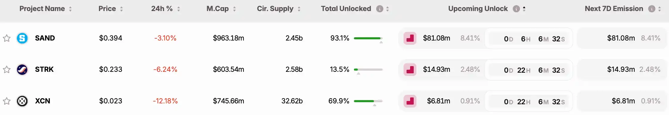 每日市场整体资金热度(根据资金费率反映)与代币解锁
