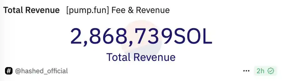自从推出以来,PumpFun 赚取了超过 286 万 $SOL,约合 5.77 亿美元。它可能是有史以来最成功的初创项目之一。