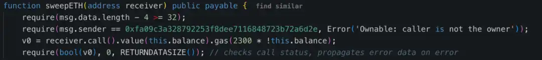 4. 调用后门函数转移资金:攻击者使用合约中的 sweepETH 和 sweepERC20 函数,将冷钱包中的 40 万枚 ETH 和 stETH(总价值约 15 亿美元)全部转移至未知地址。