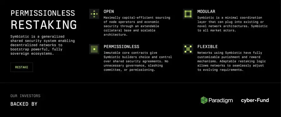Symbiotic 是一个去中心化的重质押协议,允许用户重质押资产(包括比特币),以在多个网络中赚取额外收益。它专注于 DeFi 和主权区块链生态系统的共享安全性。