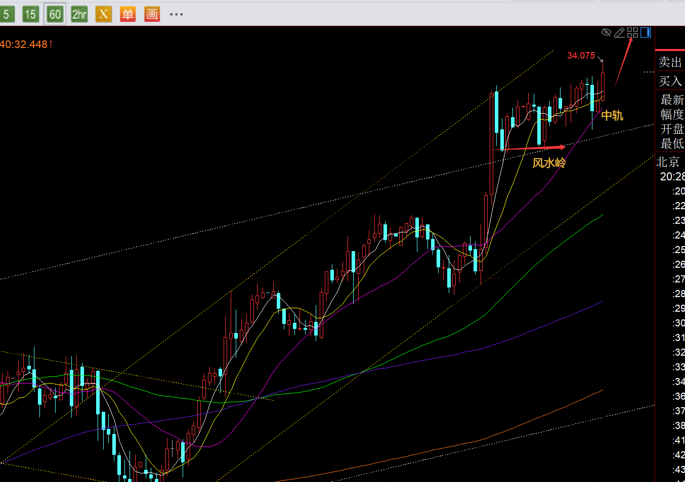 白银方面:和黄金图解基本一致,依托中轨逢低继续看涨,凌晨低点33.6一线作为风水岭防守,目标关注通道上轨34.3-34.4;