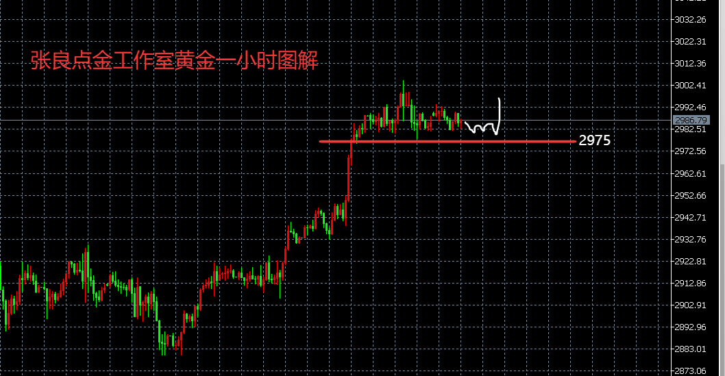 当然,如果1小时跌破2975这个位置,那么短期将面临调整风险,但是大家也不要慌,基于大的方向依然是看涨的,所以呢,回落就是给你再次上车的机会,大家要好好珍惜。如果你对这种盘中的时机把握不好,也可以预约我的直播,以上观点不做投资依据,投资有风险,需谨慎。