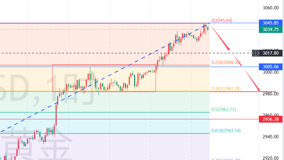 黄金这波上涨不管是受消息面的刺激还是美联储利率决议的影响从2880到3040的160个点的涨幅,其间没有像样的回调,所以今日,也就是利率决议前,秦氏金升认为是可以开始着手布局空单看一波回调。从小时级盘面上来看,下方首要支撑是3018(昨天欧盘前的高点)其次是3005(上周的高点)支撑,这两个短期支撑有效破位,那么下方着重关注2982,上周五上行途中震荡调整区间的下轨位置。故建议现价3040可以开始布局空单看跌,见3045加仓空,统一保护3050,阶梯目标3018-3005-2982