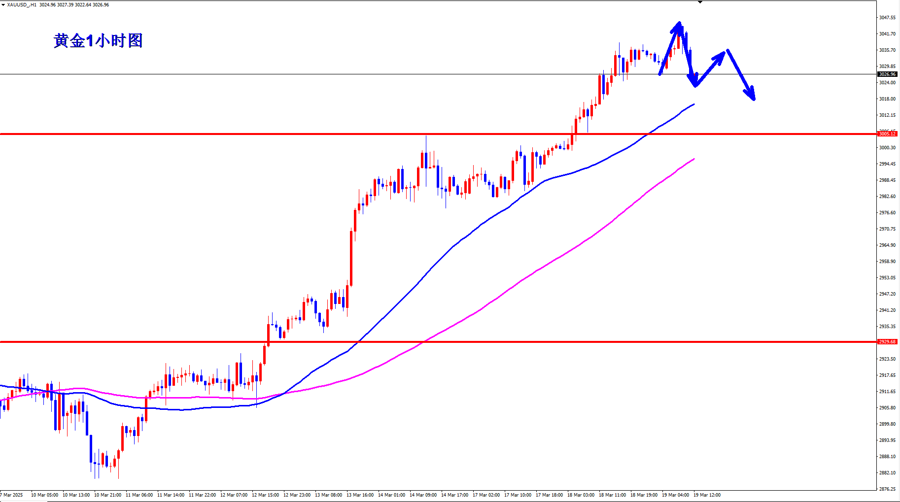 黄金1小时现在是高位连阴下跌,那么黄金短线没有消息的支撑,要直接大涨也还是比较困难,黄金反弹短线高位还是可以继续空。黄金如果晚上美联储利率决议不能大涨,那么黄金之后就可以开始高空思路了。黄金反弹承压3045还是继续高空为主。