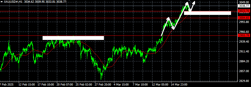目前k线全部都是大阳线,k线只要回落,无一不拉升起来了,哪怕欧盘k线回落到3024附近,大阳线直接起飞了,显然多头是摁不住了,技术指标也是明显的多头,均线显然是向上,k线全部企稳均线,多头发力中,继续看3050上方