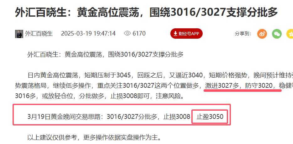 外汇百晓生:黄金如期上涨至目标位3050,后续3055压制短空