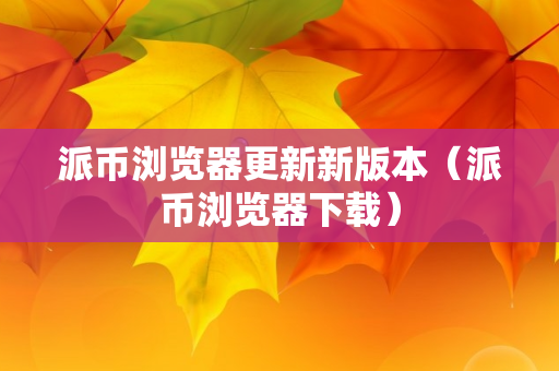 派币浏览器更新新版本(派币浏览器下载)