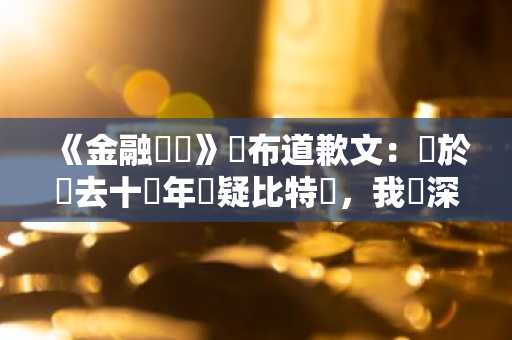《金融時報》旗下的專欄部門 FT Alphaville 於今日發佈了一篇聲明,為過去十幾年還始終對比特幣抱持質疑態度而道歉。