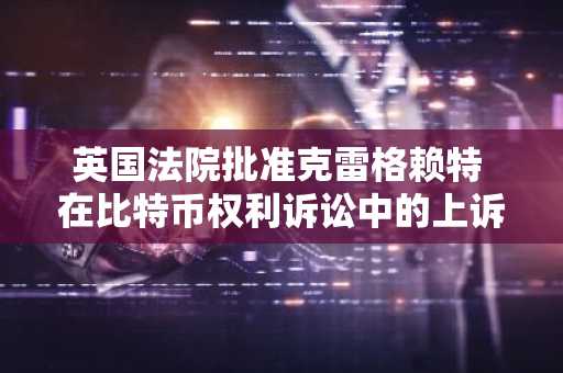 英国法院批准克雷格赖特 在比特币权利诉讼中的上诉
