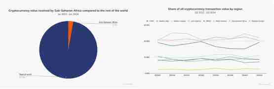 报告指出,撒哈拉以南非洲的加密货币交易量虽然仅占全球的2.7%,但在2023年7月至2024年6月期间,仍展现稳定成长。该区域的链上交易价值达到1250亿美元,较去年增加了75亿美元,显示出加密货币在当地的重要性日益增加。