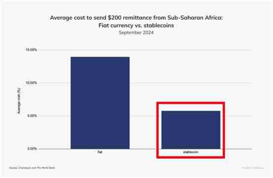 而与使用法定货币提供的传统汇款方式相比,使用稳定币从撒哈拉以南非洲汇款200美元的平均成本要低约60%。