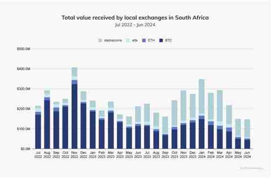 报告表示,南非作为非洲最大的经济体,过去一年内加密货币的接收价值达到260亿美元,特别是机构投资的增长,让南非成撒哈拉以南最重要的加密市场之一。也补充,随着南非金融监管机构将加密资产纳入现有法律框架,当地的加密市场发展势头强劲。而中心化交易所(CEX)与南非法币兰特(ZAR)的交易对也相当繁荣,每月交易价值数亿。