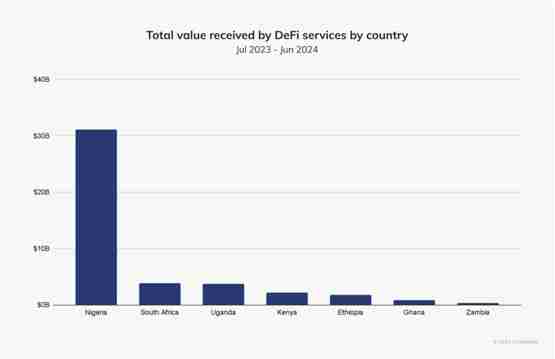 而DeFi服务也在尼日利亚快速成长,通过DeFi接收的加密货币价值已超过300亿美元。