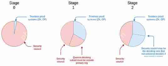 以太坊rollup安全性的三个“阶段”可以根据安全委员会何时被允许覆盖无需信任(即纯加密或博弈论)组件来描述: