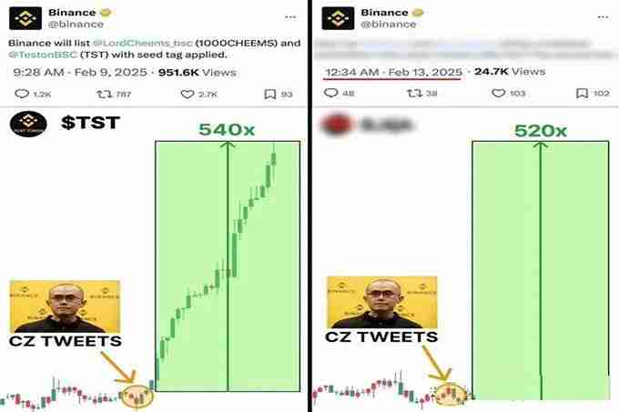 $TST近期表现亮眼,其演示视频引发市场关注,随后迅速登陆头部交易所,市值一度达到6亿美元,并带动$BNX、$CAKE、$BAKE等相关币种上涨。币安CEO CZ近期频繁提及Meme币,并助力$TST在币安链上快速上线,为投资者带来盈利机会。