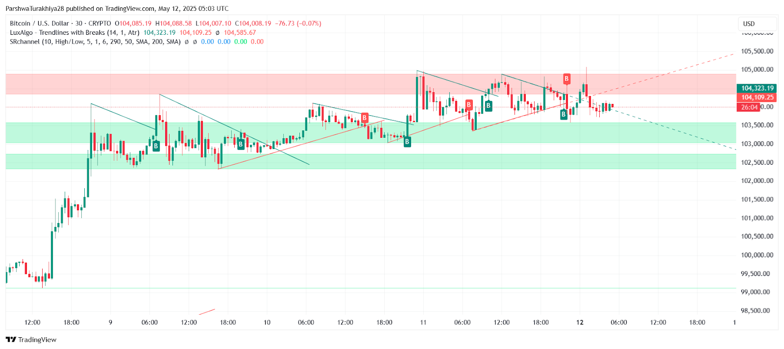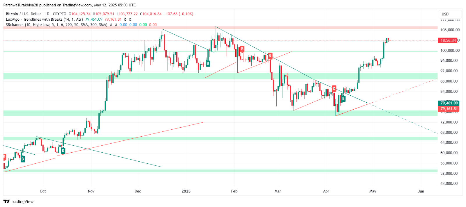 - 5 月 21 日临近,BTC 准备突破,Deaton 目标价位在 10.9 万美元之后达到 12.5 万美元