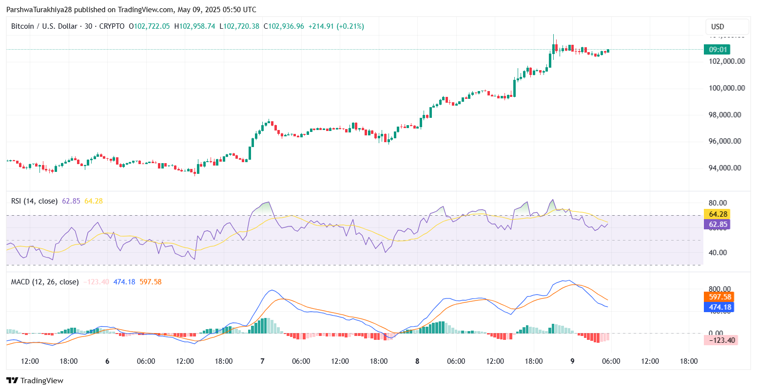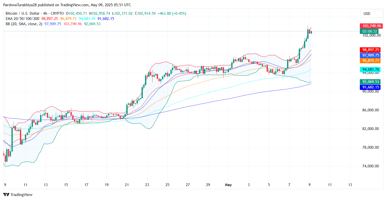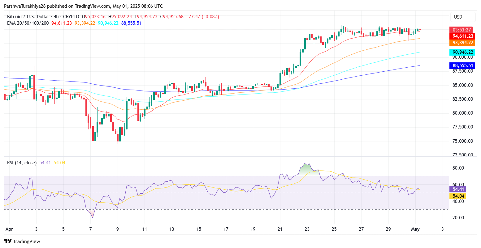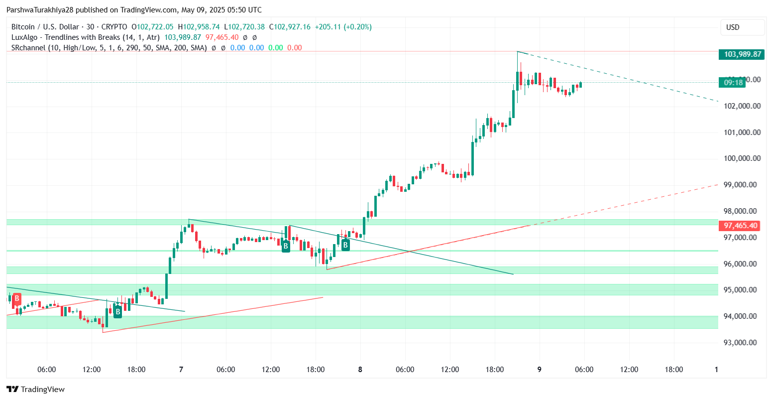 - 2025 年 5 月比特币 (BTC) 价格预测:BTC 能否突破 10 万美元或面临阻力?