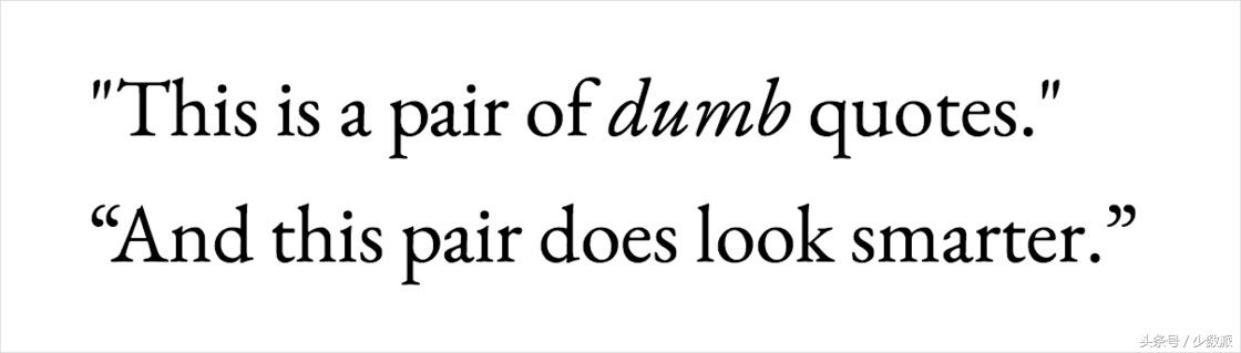 中文用户可能对这个问题感受不太明显,因为任何中文输入法下的引号键都会输出弯引号。「按一次是前引号,再按一次是后引号」是小学信息课就会教的口诀(尽管显然不严谨)。但对于几乎不需要输入法辅助的英文用户来说,图省事直接用直引号就是再常见不过的做法。因此,引号的「弯」「直」之辨是西文排版的入门课之一。翻开任何一本英文排版书籍,几乎都能找到对于直引号痛心疾首的批判,理由也很明显——太丑。在排版中使用直引号(常常也被嘲讽地称为「打字机引号」或「呆(dumb)引号」)被认为是一种偷懒或业余的行为。