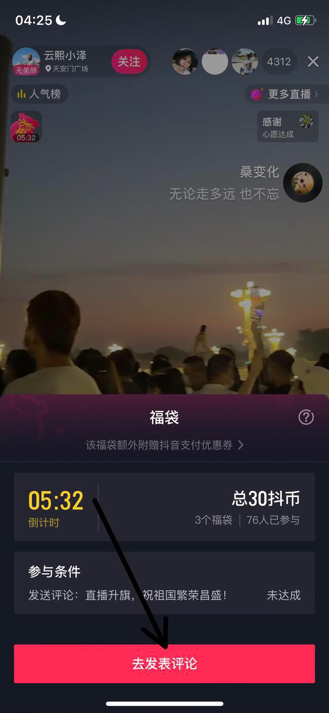 3、等待开奖即可,若中了福袋则可以0充值获得抖币。