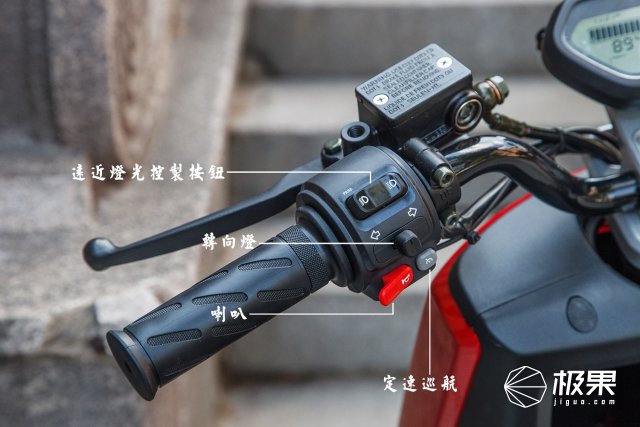 N1S的左侧手柄设计与N1相比,远近灯光控制由原来的上下按钮改为左右按钮,喇叭按钮也改为按压式的,同时在旁边加入了定速巡航按钮。
