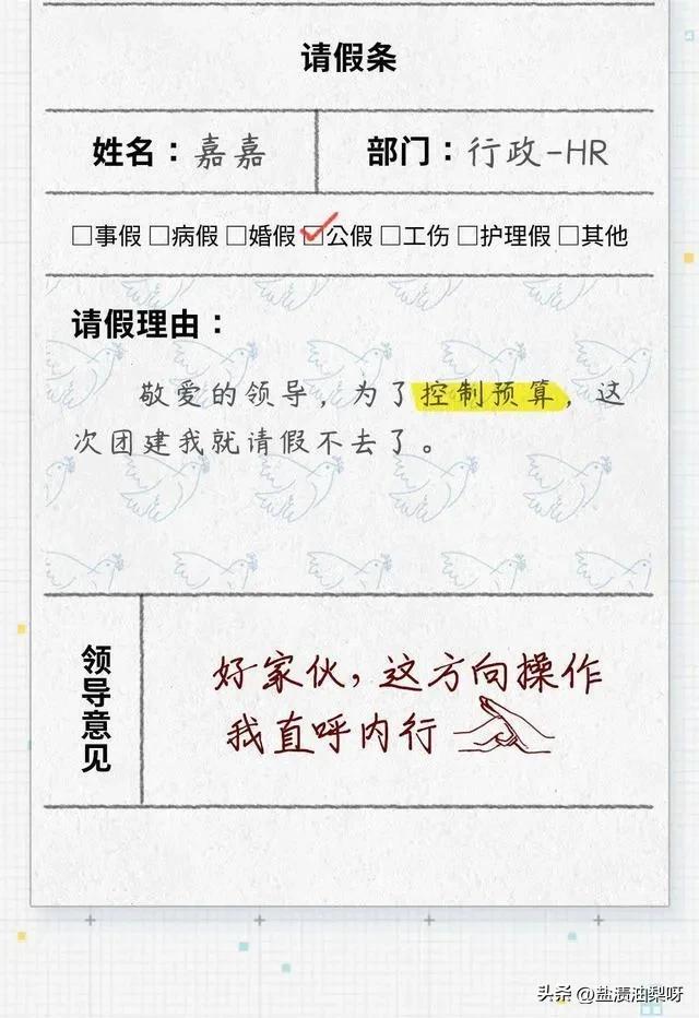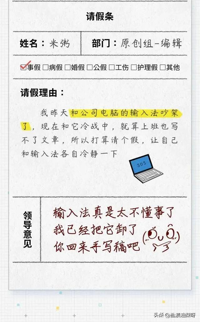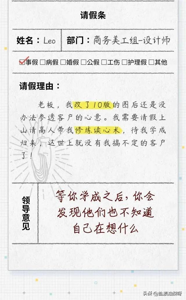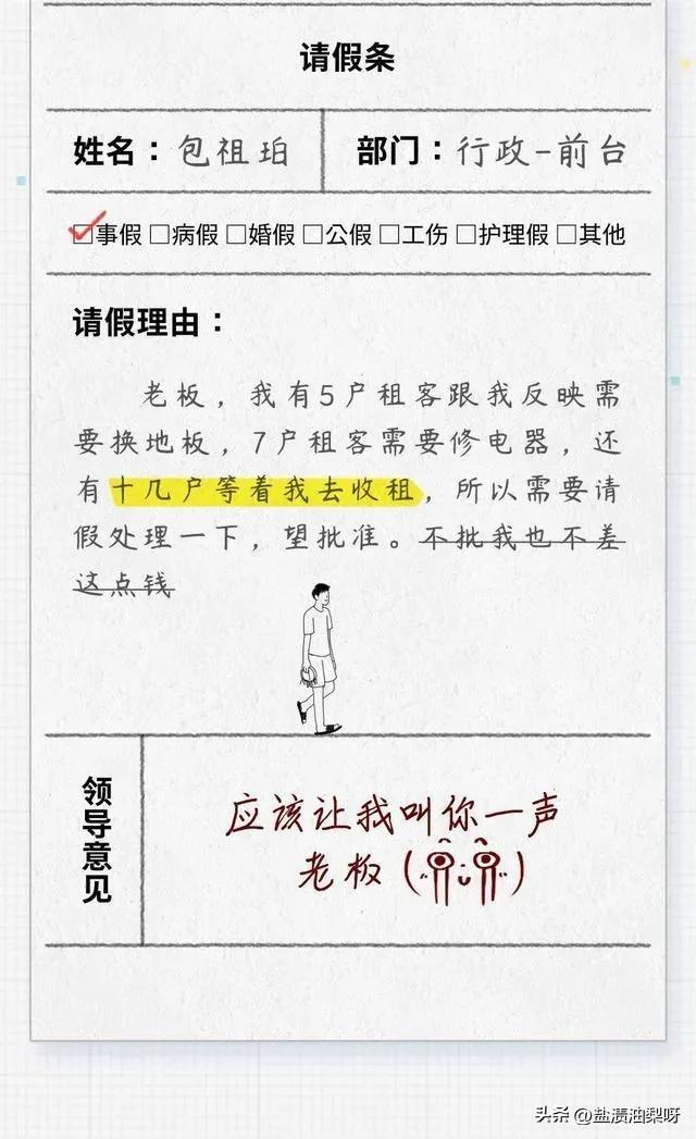明明请假扣了一天工资,已经把这天的薪水扣除了,但领导批假时还是那么不情愿,请个假恨不得要写一个四百字小作文。