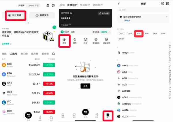 链上充值的操作并不复杂。以欧易交易所app为例,充值的流程如下: