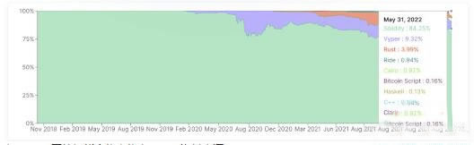 由Solidity 写的智能合约大约占84%。资料来源:DeFiLlama