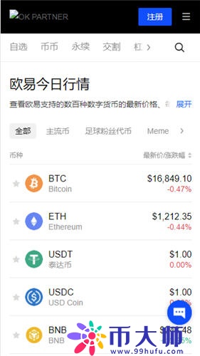 实时了解比特币、以太坊、莱特币、欧意币等区块链资产价格波动;