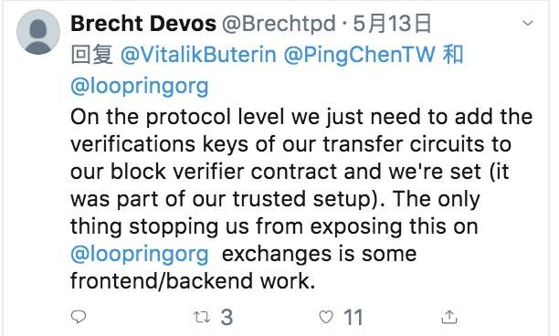 对此,Loopring首席架构师Brecht Devos给出的说法是: