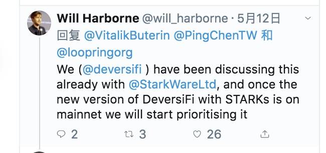 而另一位有力竞争者StarkWare也在研发解决方案,其合作方DeversiFi的首席执行官Will Harborne表示,一旦方案部署到主网之后,就会优先处理这个问题。