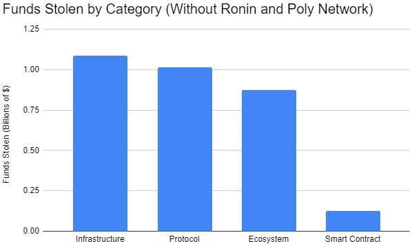 如果排除前三大攻击,则针对基础设施的被盗案件是损失资金最多的类别。