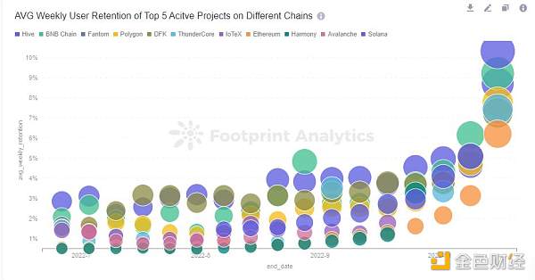 AVG Weekly User Retention of Top 5 Active Projects on Different Chains