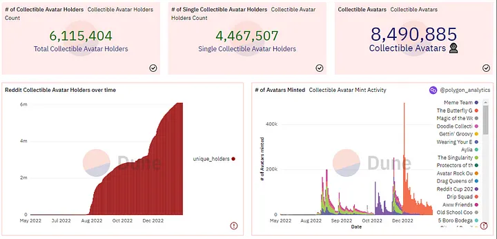 到目前为止,Opensea 聚集了 300 万用户,但 Reddit 在短短六个月内就已经聚集了超过 600 万持有者。当然,这些产生的钱包在 Polygon 网络上并不经常活跃。但 Reddit 已经有效地吸引了许多用户进入区块链生态系统。