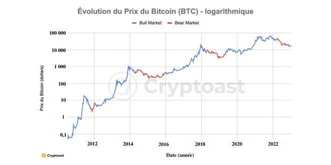 接受了这一观察,投资者心中只剩下一个问题:熊市何时结束?为此,Cryptoast 查看了自 2010 年以来的比特币数据,以分析之前的牛市和熊市周期。