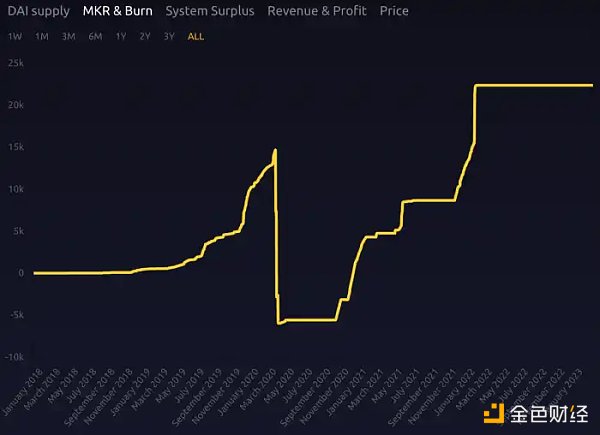 虽然协议盈余可以回购销毁 MKR 使其通缩,但是似乎并不可观。MKR 上线 5 年,总量 100 万枚 T抹茶en 仅销毁了 2.2 万枚,平均每年通缩率为 0.4%。