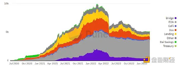 DAI 分布情况:占比最大的是 EOA 账户,其次是 DEX