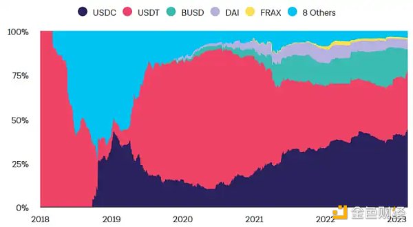 最早作为 DEX 的 Curve 一直在积极的推动自己的』稳定币『 $3CRV,试图将尽量多的激励倾斜到 $3CRV 货币对上而不是单独的稳定币对,并且在去年最中宣布了新的超额抵押稳定币 crvUSD;TVL 排名第一的通用借贷协议 Aave 同样在去年夏天宣布推出其 DeFi 超额抵押稳定币 $GHO 的计划;而一向思路灵活的 FRAX 也于去年 9 月便推出了 Frax Lend,允许用户通过支付市场利率而不是常规的铸造机制来向官方合约借用/铸造 FRAX,其机制和 MakerDAO 的 D3M 类似。