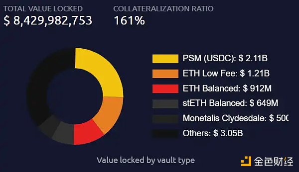 从上图可以看到:1)ETH Vault 在 2022 年 11 月之前一直是 MakerDAO 的重要获利来源;2)2022 年 11 月之后,RWA(现实资产)Vault 成为 MakerDAO 协议收入最大来源。